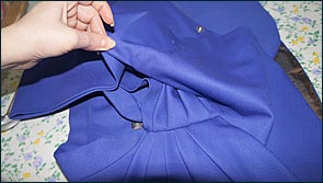 Одной короткой стороной петля вшивается в подрез около левого плеча, второй стороной крепится к застёжке