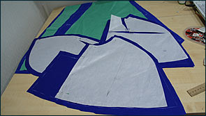 Кроим детали кейпа. Плечевой пояс переда и спинки, дублируем клеевой. Плечевые срезы укрепляем долевиком.