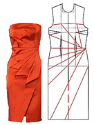 На проверенной основе платья наносим модельные линии (красный цвет).
