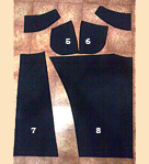(детали 1, 2, 3, 4) и линию входа в карман (детали 5, 6). Склеиваем скотчем линию бокового шва и